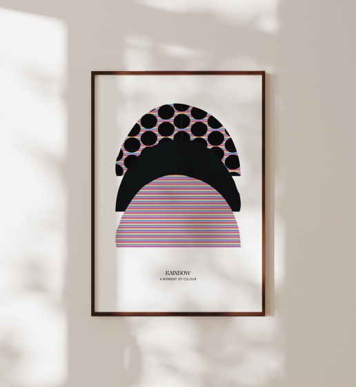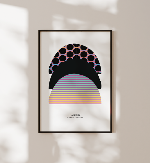 Rainbow is no.2 of the Rainbow Collection, featuring layered arcs of colour arranged in a balanced, graphic composition that highlights harmony and gradual transition. Clean lines and carefully spaced colour bands create a sense of openness while still delivering a confident visual statement.
